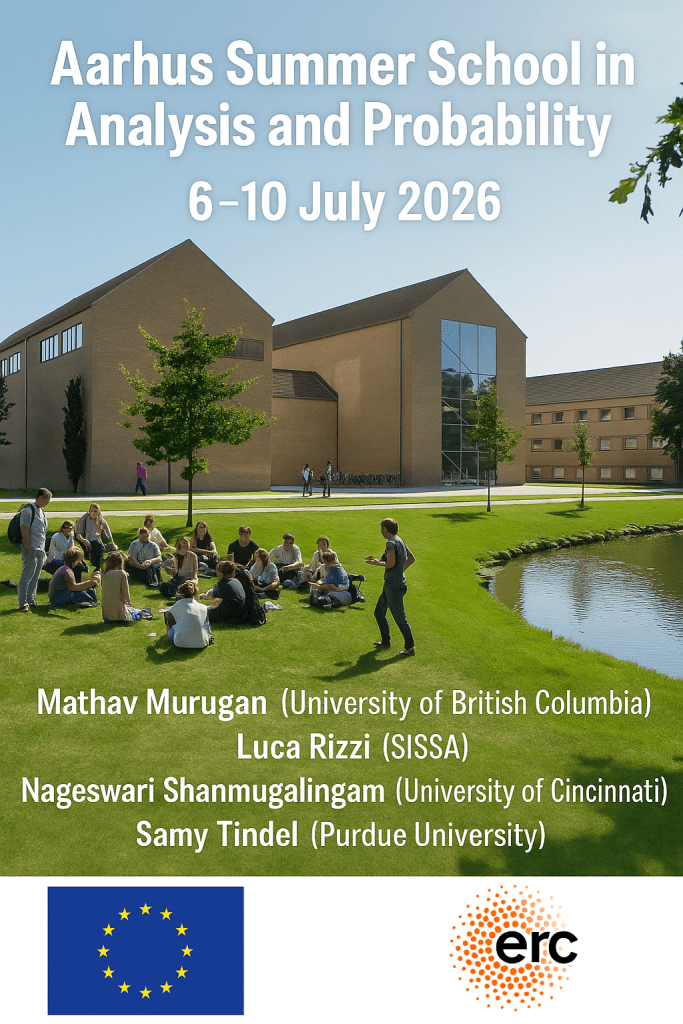 The 6–10 July, 2026, Aarhus Summer School in Analysis and Probability aims to bring together leading experts and young researchers in the areas of analysis, probability theory, and their interactions. The school will feature a series of five hours lecture courses delivered by distinguished speakers, offering participants the opportunity to engage with current developments at the forefront of the field. In addition to the main lectures, the program will include short talks by graduate students and early-career researchers. The summer school will provide a stimulating and friendly environment, ideal for fostering discussions, collaborations, and the exchange of ideas among researchers at all career stages.